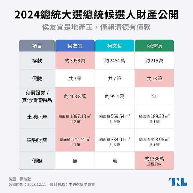 超級比一比:2024總統、副總統候選人申報財產有什麼端倪?