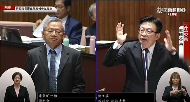 而郭國文也痛批說,這些台灣企業只要找上政府,政院都是有求必應,要水給水、要電給電、土地也沒問題,那些大財團都會開口要這幾項。但他也反問道,那其他國家企業對員工比較大方的時候,我國的企業財團有做到嗎?從GDP佔比來看,顯然是沒有。「所以,我希望院長解決企業的要求時,能否也請他們解決勞工的低薪」,郭國文說。