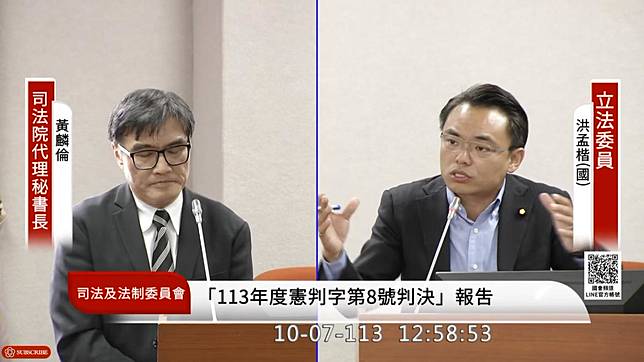 牛煦庭指出,大法官在詮釋憲法的過程中,有沒有考慮法律在社會中公信力的重要性,及法律有維護社會秩序穩定跟人心安定的作用?這些概念不重要嗎?司法院代理秘書長黃麟倫表示,憲法法庭是基於維護憲政秩序的穩定,解釋憲法的本質意旨保障,大家應該要尊重。