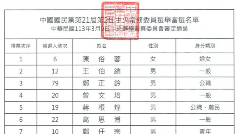 登記即當選、投票率歷史新低 國民黨中常委選舉「傅崐萁系統」陳俗蓉拿第一