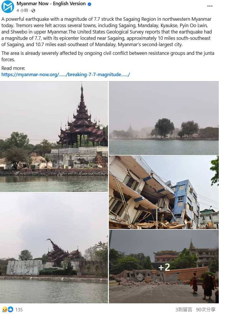 緬甸7.7強震約影響1300萬人 美地質調查局:恐數千人傷亡