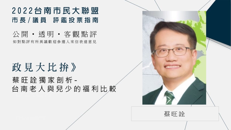 政見大比拚》蔡旺詮 獨家剖析台南老人與兒少的福利比較