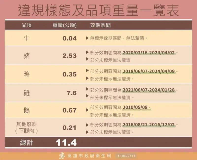 遭搜出11.4噸過期肉 衛生局調查罰840萬