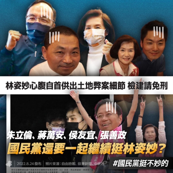 民眾黨:縣長林姿妙,讓「民主聖地」招牌蒙塵。