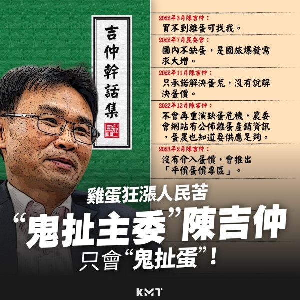 國民黨:雞蛋狂漲人民苦 「鬼扯主委」陳吉仲只會「鬼扯蛋」