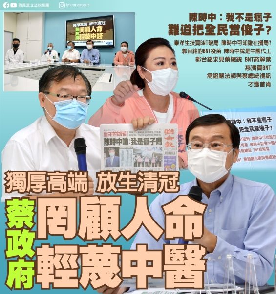 國民黨團:「獨厚高端 放生清冠 蔡政府罔顧人命 輕蔑中醫」